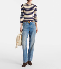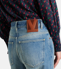 Build your casualwear edit around versatile staples like these Valentino jeans. Crafted from pure cotton denim, the mid-rise pair features a classic wide-leg silhouette and artful fading throughout. Product Details - Material: 100% cotton - Care instructions: hand wash - Made in Italy - Designer color name: Medium Blue Denim - Item color: blue - Details: 100% leather - Contains non-textile parts of animal origin - Item number: P01059777 Size & Fit - True to size - Non-stretchy fabric - Wide-leg - Mid-rise - The model seen in the picture is 178cm-5'10" and wearing a size 26