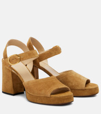 The Fawcette platform sandals from Valentino Garavani will add elegance and elevation to your ensembles. Made in Italy out of suede, this design is set atop 100mm block heels, adorned with gold-toned monogram at the back. Product Details - Upper: leather - Lining: leather - Sole: leather insole and sole - Toe shape: round open toe - Made in Italy - Includes: shoe box, dust bag - Designer color name: Havana Beige - Item color: beige - Closure: buckle fastening - Hardware color: gold - Item number: P01061984 Size & Fit - Fits slightly large to size - we recommend trying a half size smaller - Slightly narrow - European sizes - 10cm-4" heel (size EU 38) - 2,5cm-1" platform (size EU 38)