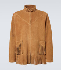 This jacket from Valentino showcases the brand's dedication to meticulous craftsmanship and refined sophistication. Expertly made from soft suede, the style is complete with hook fastenings, patch pockets, and fringed trims. Product Details - Material: 100% calf leather (suede) - Care instructions: specialist clean - Made in Italy - Designer color name: Tabacco - Item color: beige - Trim: 84% cotton, 5% viscose, 4% acrylic, 4% polyester, 2% wool, 1% polyamide - Contains non-textile parts of animal origin - Pockets: patch pockets - Closure: hook-fastening front - Item number: P01041243 Size & Fit - Fits small to size - we recommend trying one size larger - Designed for a loose fit - Non-stretchy fabric - Falls below the hip - Height of model is 189cm-74.5" and wears a size IT 50 - Length of fringe 12cm-4.5"