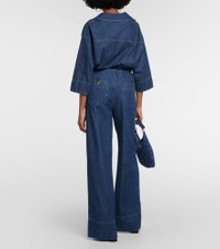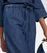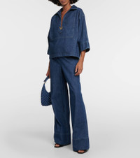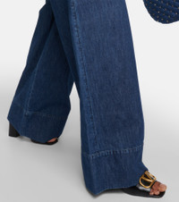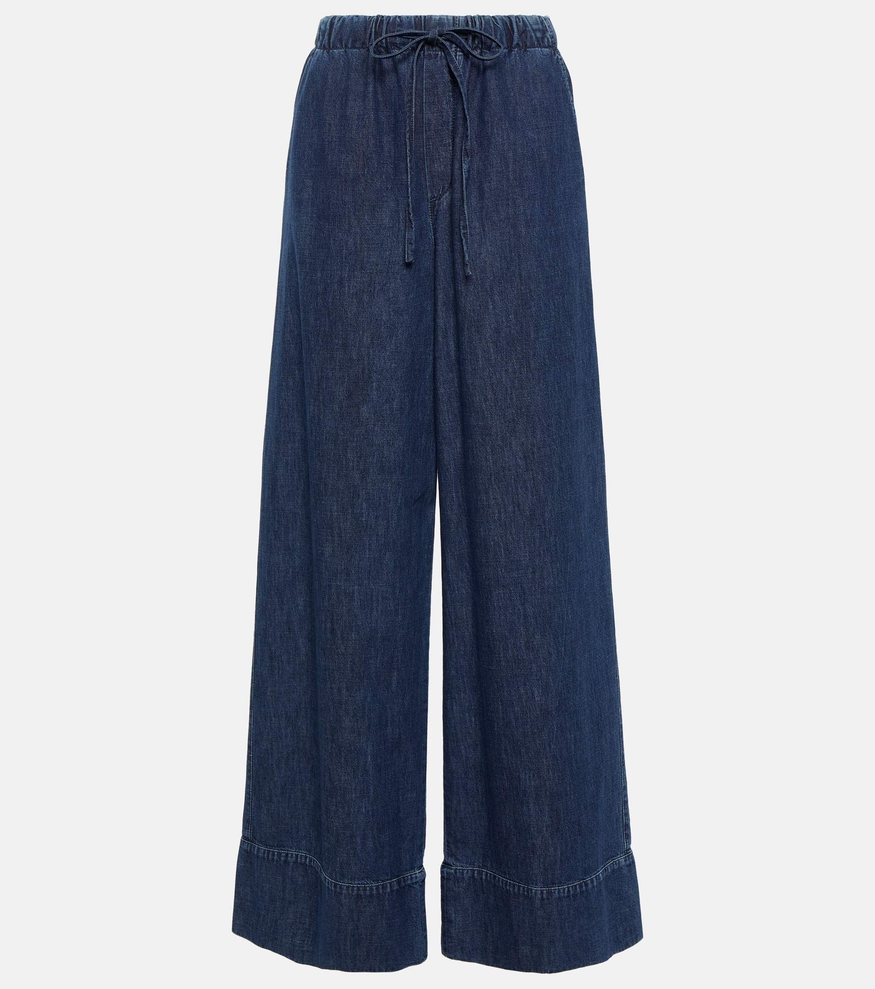 Your warm-weather ensemble is elegant in these jeans from Valentino. The high-rise silhouette is crafted from the brand’s lightweight chambray denim, has breezy wide legs, and features a drawstring waist for comfortable all-day wear. Product Details - Pocket lining: 35% cotton, 65% polyester - Made in Italy - Care instructions: machine wash at 30 degrees - Material: 100% cotton - Item number: P00825357 Size & Fit - True to size - Elasticated waist - Adjustable at the waist - Mid-weight material - Wide-leg - The model seen in the picture is 178cm-5'10" and wearing a size IT 40