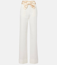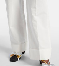 Crafted from cotton and linen, these straight pants from Valentino feature an elongating silhouette with a high-rise fit. The single pleat design is complete with thick cuffs and zipped side closure for a sleek finish. Product Details - Material: 79% cotton, 21% linen - Care instructions: dry clean - Made in Italy - Designer color name: Avorio - Item color: white - Material II: 100% acetate - Pocket lining: 100% cotton - Closure: zipped side - Pockets: slant pockets, back pockets - Hem: cuffed - Single pleat - Item number: P01059918 Size & Fit - True to size - Non-stretchy fabric - Straight leg - High-waisted - Height of model is 174cm-68.5" and wears a size IT 40