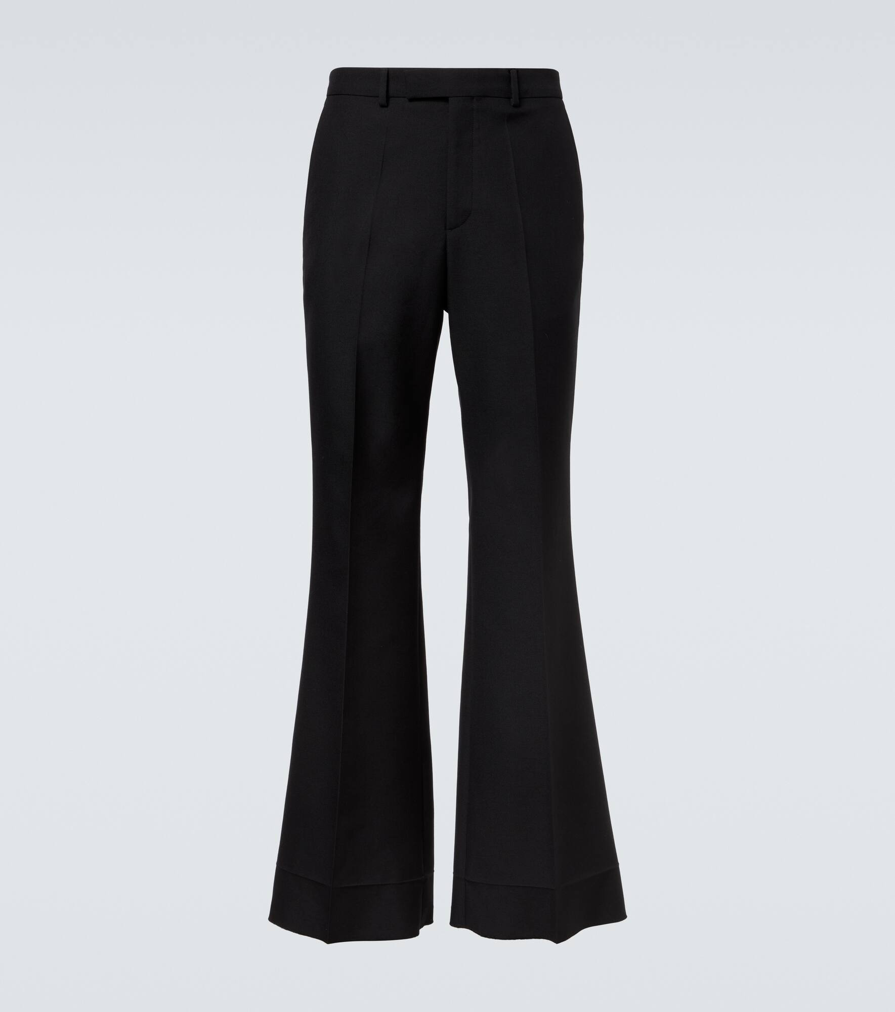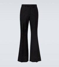 Timeless and excellently tailored designs are a hallmark of Valentino, the most established Italian Maison de Couture. These high-rise pants boast bold, flared legs. Product Details - Material: 55% polyester, 45% wool - Care instructions: dry clean - Made in Italy - Designer color name: Nero - Item color: black - Closure: zipper fly, button and hook fastenings - Pocket lining: 100% cotton - Lining: 100% cupro - Pockets: side slit pockets, back pockets - Belt loops - Item number: P01068281 Size & Fit - True to size - Non-stretchy fabric - Flared - High-waisted - Unhemmed for tailoring - The model in the picture is 185cm-6'1" and wearing a size 50