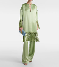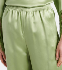 Product Details - Material: 100% silk - Care instructions: dry clean - Made in Italy - Designer color name: Dirty Sage - Elasticated waistband - Pockets: side slit pockets - Item number: P01006680 Size & Fit - True to size - Elasticated waist - Non-stretchy fabric - Wide-leg - Unhemmed for tailoring - The model seen in the picture is 178cm-5'10" and wearing a size IT 40