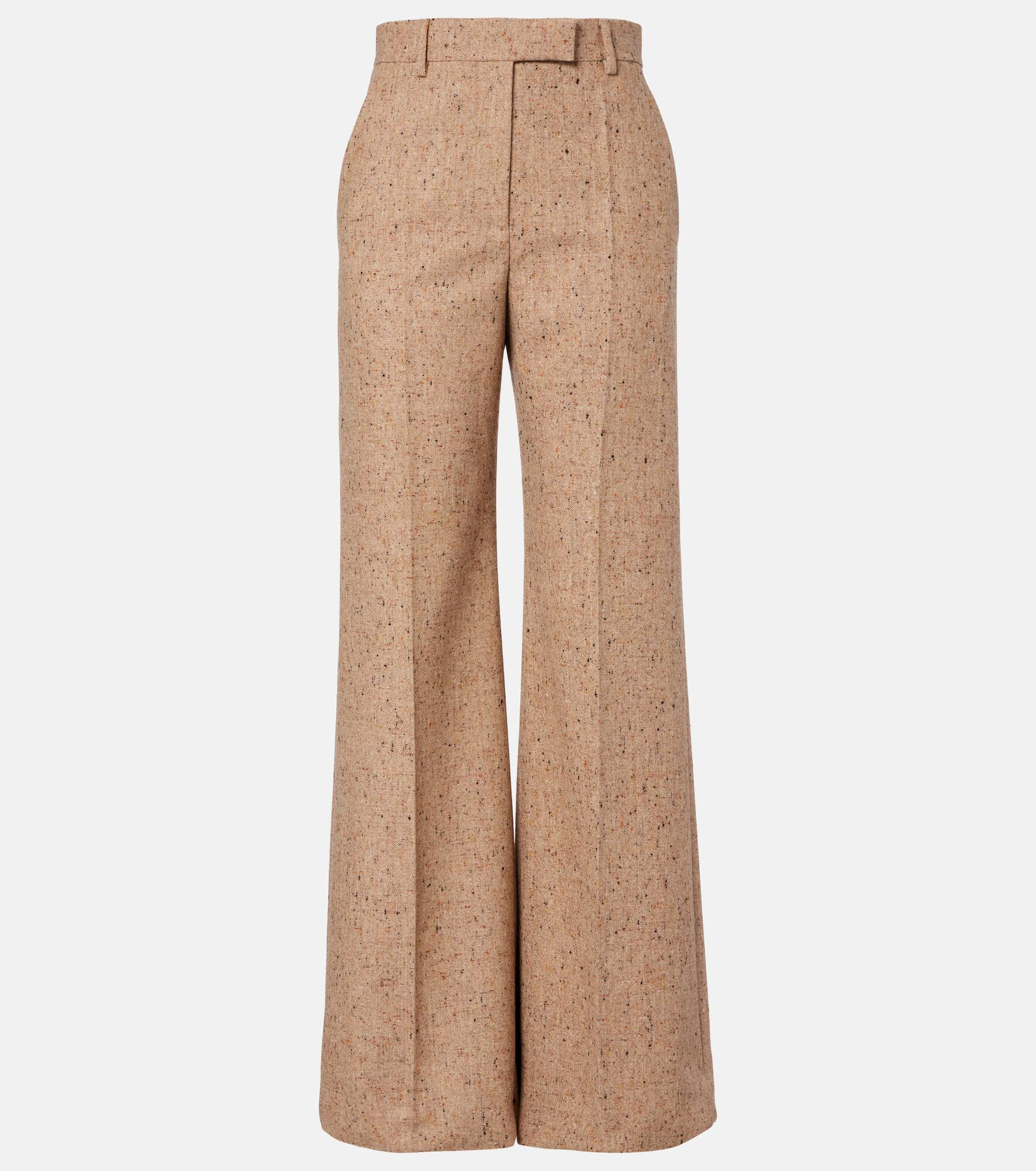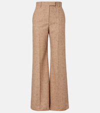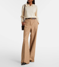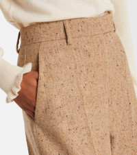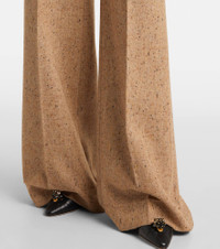 Crafted in Italy from virgin wool, these Valentino pants are tailored to an oversized, wide-leg silhouette. The pair is designed with a high-rise waistline and finished with elegant front creases. Product Details - Material: 100% virgin wool - Care instructions: dry clean - Made in Italy - Designer color name: Avorio/Beige - Item color: beige - Pocket lining: 100% cotton - Lining: 100% cupro - Closure: zip, hook, and button fastening - Belt loops - Pockets: slant pockets, back pockets - Single pleat - Hem: unfinished (ready for alteration) - Item number: P01090213 Size & Fit - True to size - Non-stretchy fabric - Wide-leg - High-waisted - Unhemmed for tailoring - The model seen in the picture is 178cm-5'10" and wearing a size IT 40