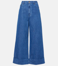Product Details - Material: 64% cotton, 36% linen - Care instructions: hand wash - Made in Italy - Designer color name: Medium Blue Denim - Contains non-textile parts of animal origin - Closure: zip and button fastening - Pockets: five pockets - Item number: P01006793 Size & Fit - Fits small to size - we recommend trying one size larger - Non-stretchy fabric - Wide-leg - High-waisted - The model seen in the picture is 178cm-5'10" and wearing a size 27