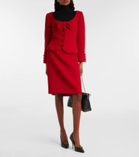 Build sophisticated ensembles around pieces like this Valentino pencil skirt. The piece is made in Italy from soft wool-blend tweed and features a high-rise waistline that gracefully flatters the silhouette. Product Details - Material: 97% wool, 3% polyamide - Care instructions: dry clean - Made in Italy - Designer color name: Paris - Item color: red - Lining: 74% acetate, 26% silk - Closure: zipped back - Short vent - Item number: P01090206 Size & Fit - True to size - Non-stretchy fabric - High-waisted - slit length 22,0cm-8.5" - Height of model is 174cm-68.5" and wears a size IT 40