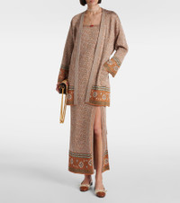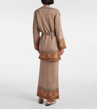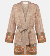 Crafted in Italy from jacquard lame, this wrap cardigan features an intricate all-over pattern. Cut to a relaxed silhouette, it showcases a floral print at the hem and cuffs. Product Details - Material: 92% viscose, 8% metallic fibres - Care instructions: dry clean - Made in Italy - Designer color name: Ginger Orange/Gold - Item color: multicolor - Detachable belt - Item number: P01026748