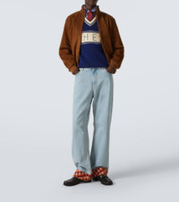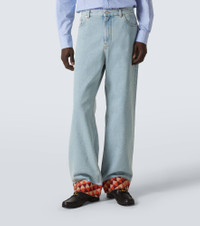 Jacquard-trimmed wide-leg jeans