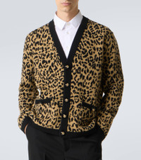 VALENTINO WOOL CARDIGAN WITH FAUVE ECLAT ANIMAL PRINT JACQUARD