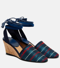 La Cruisette 75 Tasseled Embroidered Canvas Wedge Sandals