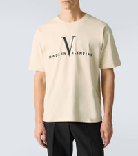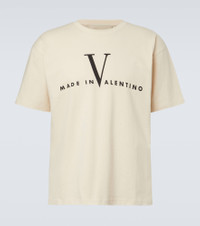 Casual yet polished, this T-shirt from Valentino is made from cotton jersey for a comfortable fit. The style features a classic crewneck and a Made In Valentino print. Product Details - Material: 100% cotton - Care instructions: machine wash at 30 degrees - Made in Italy - Designer color name: Burro/Nero - Item color: beige - Collar: crewneck - Sleeves: dropped shoulder - Item number: P01134353 Size & Fit - True to size - Straight fit - Slightly stretchy fabric - Falls below the hip - Height of model is 189cm-74.5" and wears a size L