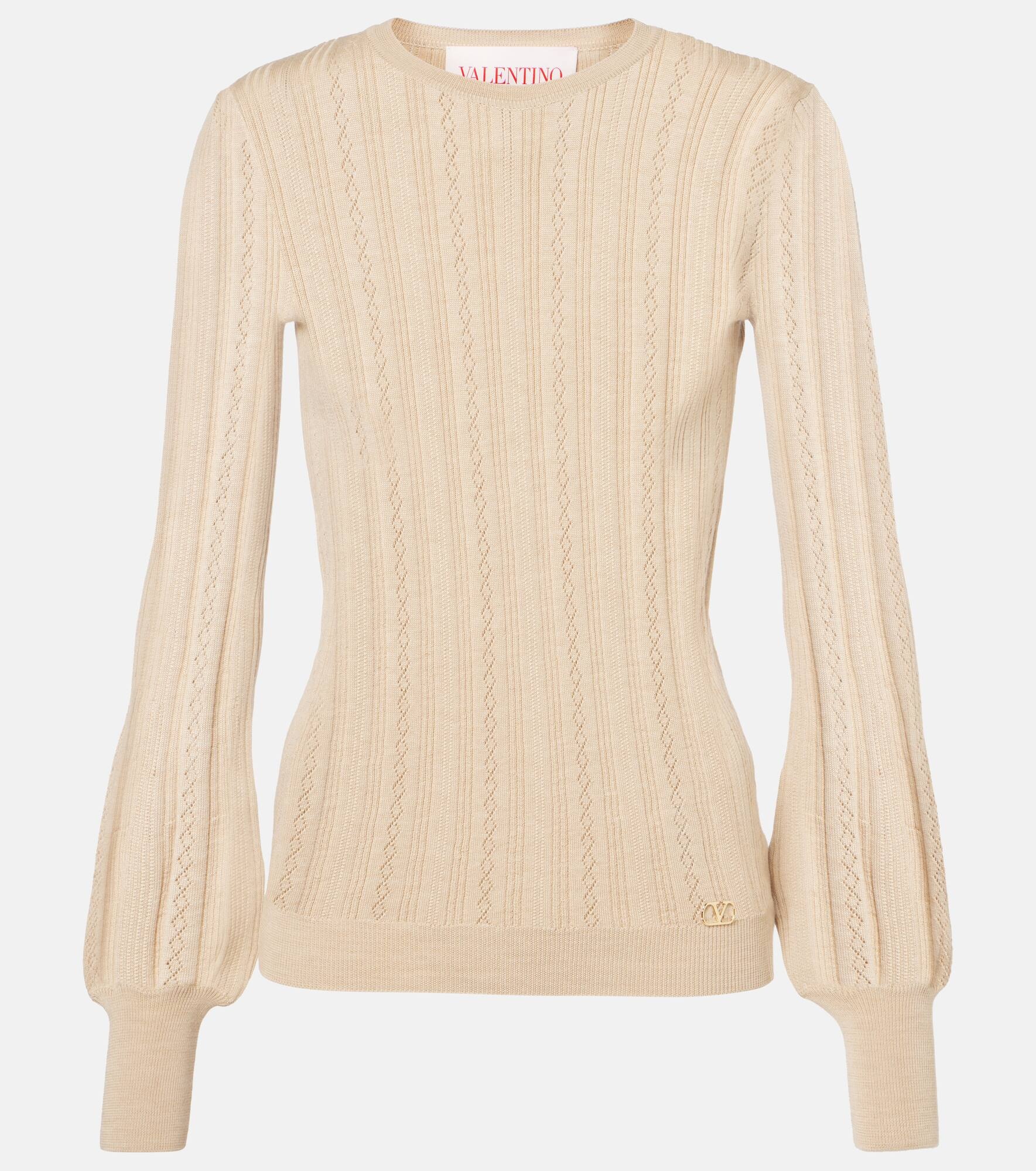 Elevated layers, like the Maglia sweater from Valentino, are the key to polished dressing in cool weather. The Italian-made design is crafted from luxe virgin wool in a beige hue. Product Details - Material: 100% virgin wool - Care instructions: hand wash - Made in Italy - Designer color name: Beige - Item number: P01006545 Size & Fit - True to size - Fitted - Stretchy fabric - Falls to the hip - The model seen in the picture is 178cm-5'10" and wearing a size XS