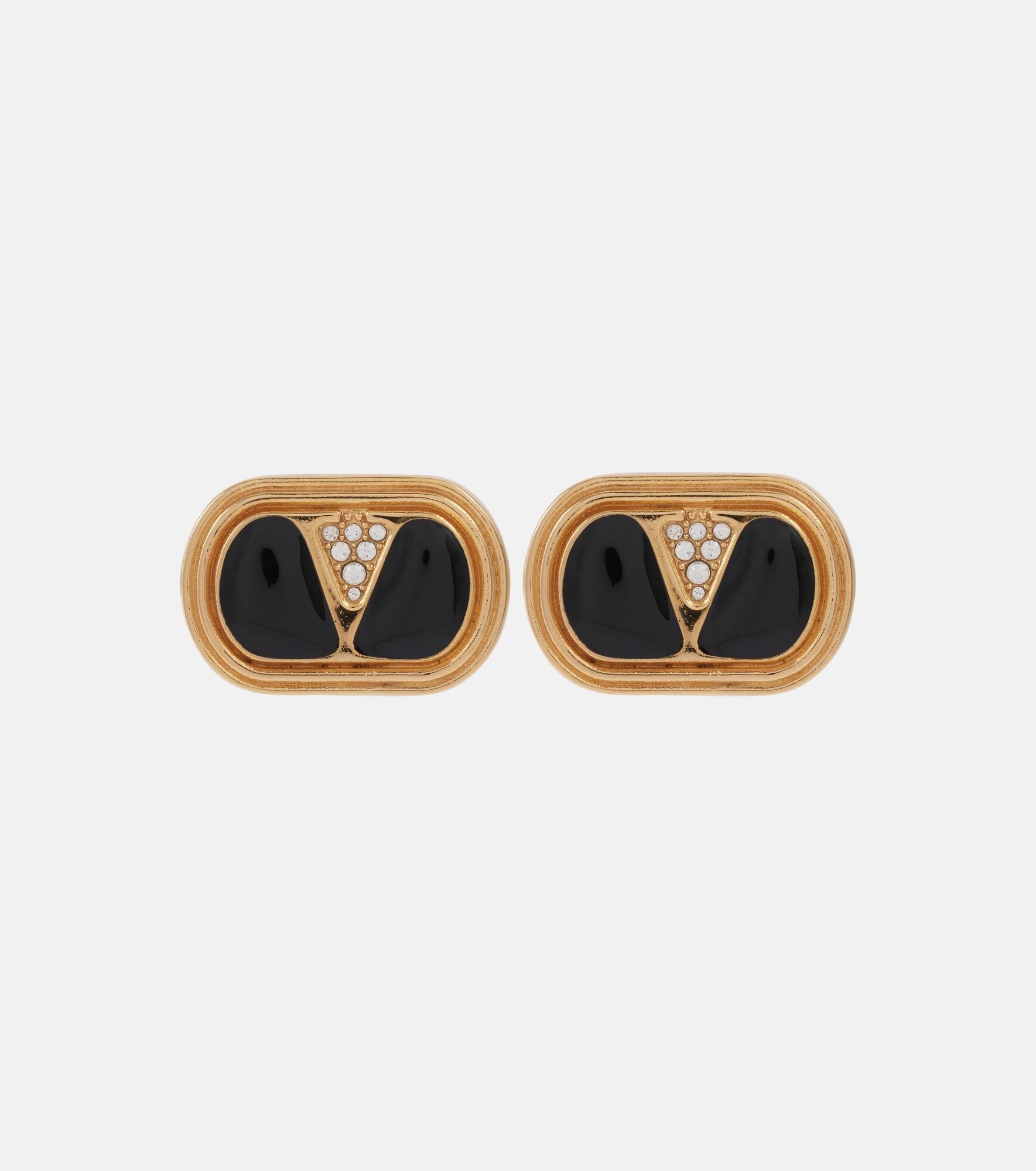 Product Details - Material: brass - Made in Italy - Includes: dust bag, box - Closure: post-back fastening - Designer color name: Oro/ Nero/ Crysal - Item number: P01007338 Size & Fit - Length 1,7cm-0.5" - Width 2,5cm-1"