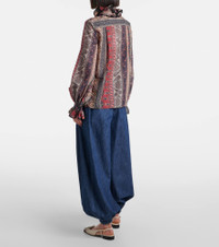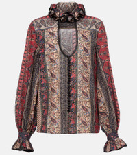Valentino draws inspiration from extravagant classicism for its Spring/Summer '25 collection. Crafted from cotton mousseline, this elaborated blouse features ruffled neckline and cuffs, balloon-sleeves, and a paisley pattern throughout. Product Details - Material: 98% cotton, 2% polyester - Care instructions: dry clean - Made in Italy - Designer color name: Multicolor - Item color: multicolor - Material II: 100% silk - Closure: buttoned front - Item number: P01026732 Size & Fit - True to size - Designed for a loose fit - Non-stretchy fabric - Falls below the hip - The model seen in the picture is 178cm-5'10" and wearing a size IT 40