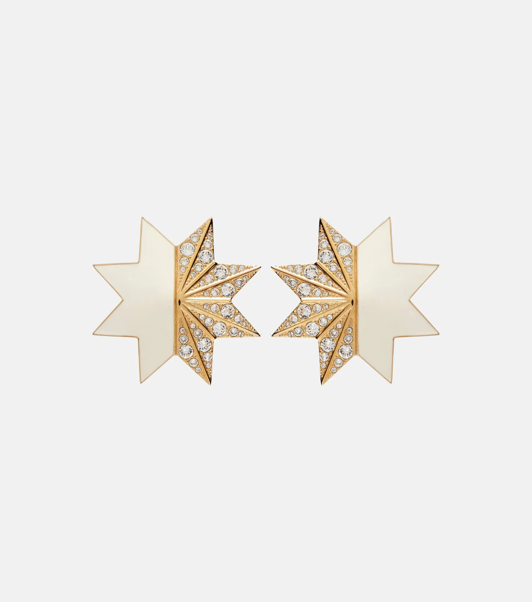 The most established Italian Maison de Couture, Valentino has become a symbol of excellence, creativity, and uniqueness. Designed with a star shape, the Pas Plus enamel earrings are adorned with precious Swarovski® crystals. Product Details - Material: brass, crystals - Made in Italy - Item color: gold, white - Closure: pin fastening - Item number: P01127226 Size & Fit - Length 5cm-2" - Max. width 5cm-2"