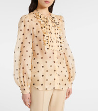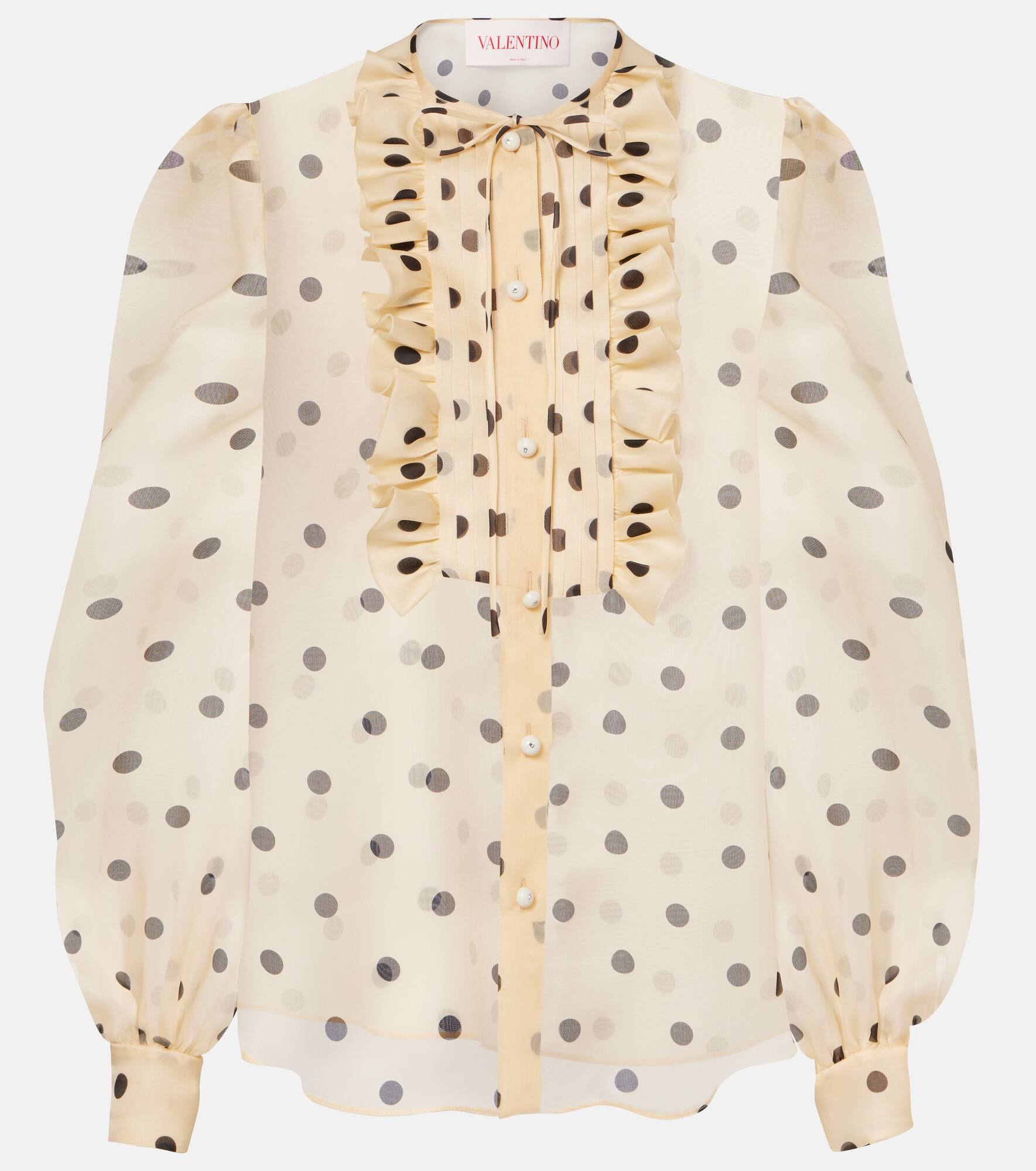 Product Details - Material: 100% silk - Care instructions: dry clean - Made in Italy - Designer color name: Avorio/ Nero - Closure: buttoned front - Self-tie collar - Cuff: two buttons - Comes with garment bag - Item number: P01006135 Size & Fit - True to size - Semi-sheer - Straight fit - Non-stretchy fabric - Falls below the hip - The model seen in the picture is 178cm-5'10" and wearing a size IT 40