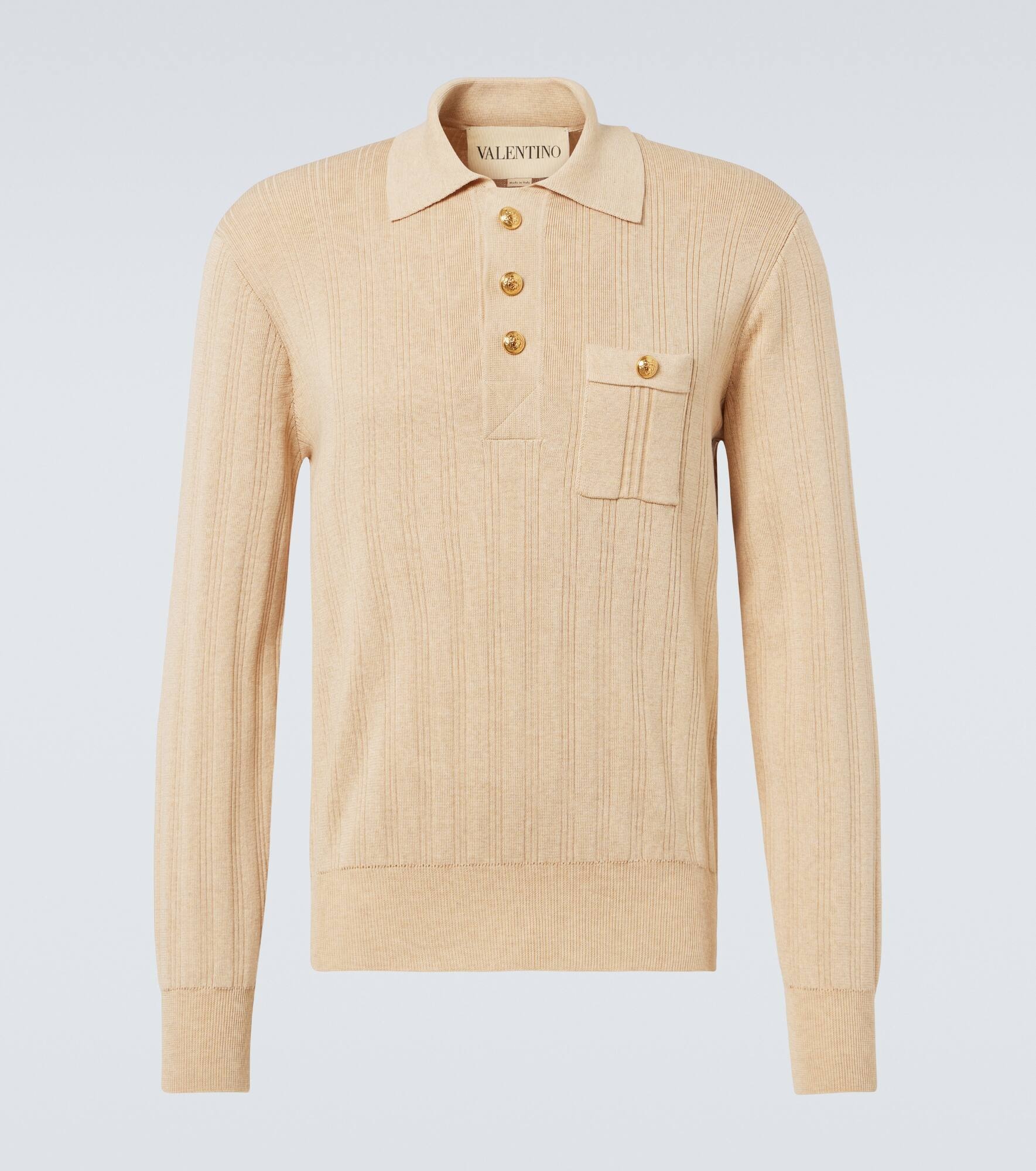LONG-SLEEVED RIBBED COTTON POLO SHIRT