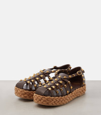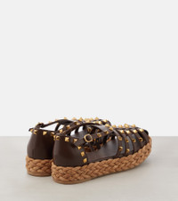 Valentino Garavani looked to ancient architecture to create the now-iconic Rockstud embellishments. They're featured on these espadrilles, made in Spain from leather. Product Details - Upper: leather - Lining: leather - Sole: leather insole, rubber sole - Toe shape: round toe - Made in Italy - Includes: shoe box, dust bags - Designer color name: Bark Brown/Naturale - Closure: buckle-fastening ankle strap - Hardware color: gold - Item number: P01000419 Size & Fit - True to size - Half sizes please take the next size down - European sizes - 3,5cm-1.5" platform (size EU 38) - 3,5cm-1.5" wedge heel (size EU 38)