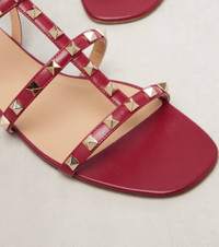 Valentino Garavani looked to ancient architecture to create the now-iconic Rockstud embellishments. Crafted from smooth calfskin leather, these sandals feature the instantly recognizable detailing and are complete with double buckle fastening. Product Details - Upper: leather - Lining: leather - Sole: leather insole and sole - Toe shape: almond open toe - Made in Italy - Includes: dust bags, shoe box - Designer color name: Insolent - Item color: red - Closure: buckle-fastening ankle strap - Item number: P01062334 Size & Fit - Fits slightly large to size - we recommend trying a half size smaller - Slightly narrow straps - European sizes