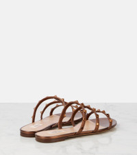 Crafted with metallic leather uppers, the Rockstud sandals from Valentino Garavani feature dainty straps with the brand's iconic stud embellishments all-over. The sandals are complete with leather bases and 0.5cm heels. Product Details - Upper: leather - Lining: leather - Sole: leather insole and sole - Toe shape: almond open toe - Made in Italy - Includes: shoe box, dust bags - Designer color name: Dark Bronze - Item color: brown - Hardware color: bronze - Item number: P01062335 Size & Fit - Fits slightly large to size - we recommend trying a half size smaller - Narrow straps - Best fit for narrow feet - European sizes