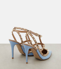 Product Details - Upper: leather - Lining: leather - Sole: leather insole and sole - Toe shape: pointed toe - Made in Italy - Includes: dust bags, shoe box - Designer color name: Popeline Blue/Poudre - Comes with extra heel tips - Closure: buckle fastening - Item number: P00884861 Size & Fit - True to size - European sizes - 10cm-4" heel (size EU 38)