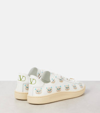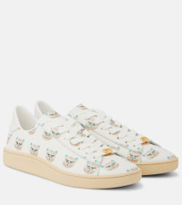 Crafted from supple leather, the Royco sneakers from Valentino Garavani feature the playful 'Le Chat De La Maison' print. Green VLogos at the backs, lace-up closures, and removable antique-brass VLogo charms complete the design. Product Details - Upper: leather - Lining: leather - Sole: leather insole, rubber sole - Toe shape: round toe - Made in Italy - Includes: shoe box, dust bags, extra laces - Designer color name: Bianco-Multicolor - Item color: white - Closure: lace-up - Hardware color: gold - Item number: P01062522 Size & Fit - Fits slightly large to size - we recommend trying a half size smaller - European sizes - 2,5cm-1" platform (size EU 38) - 3cm-1" wedge heel (size EU 38)
