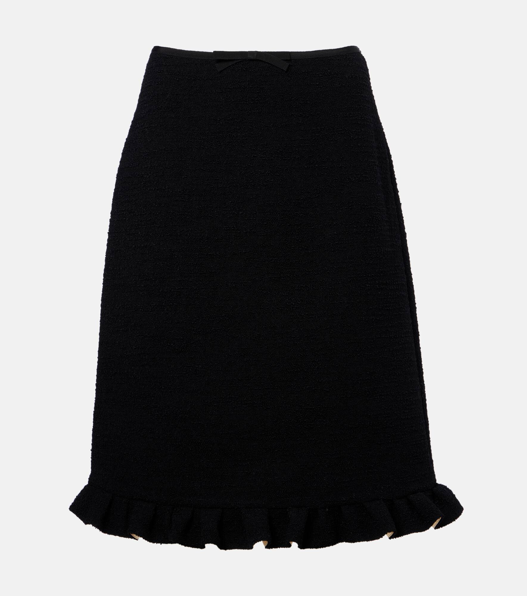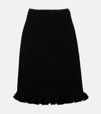 Valentino inspires individuality while redefining the values of craftsmanship and beauty rooted in its storied heritage. Expertly knitted from a wool blend, this miniskirt features a romantic ruffled hem and an invisible zip closure. Product Details - Material: 90% wool, 10% polyamide - Care instructions: dry clean - Made in Italy - Designer color name: Nero - Item color: black - Lining: 100% silk - Lining II: 100% silk - Trim: 56% cotton, 44% viscose - Closure: invisible zipper - Item number: P01059864 Size & Fit - True to size - Non-stretchy fabric - High-waisted - The model seen in the picture is 178cm-5'10" and wearing a size IT 40
