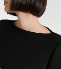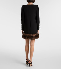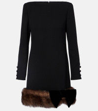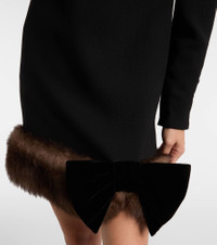 Crafted in Italy from virgin wool, this minidress from Valentino exudes elegance. The long-sleeved design is trimmed with shearling at the hem and adorned with a velvet bow. Product Details - Material: 100% virgin wool - Care instructions: dry clean - Made in Italy - Designer color name: Nero - Item color: black - Material II: 100% silk - Material III: 100% acetate - Lining: 100% cupro - Trim: 100% shearling - Details: 69% viscose, 31% cupro - Lining II: 91% silk, 9% elastane - Contains non-textile parts of animal origin - Closure: concealed zipped back - Cuff: buttoned - Includes: dust bag - Item number: P01090214 Size & Fit - True to size - Shoulder pad inserts - Cinched waist - Non-stretchy fabric - The model seen in the picture is 178cm-5'10" and wearing a size IT 40