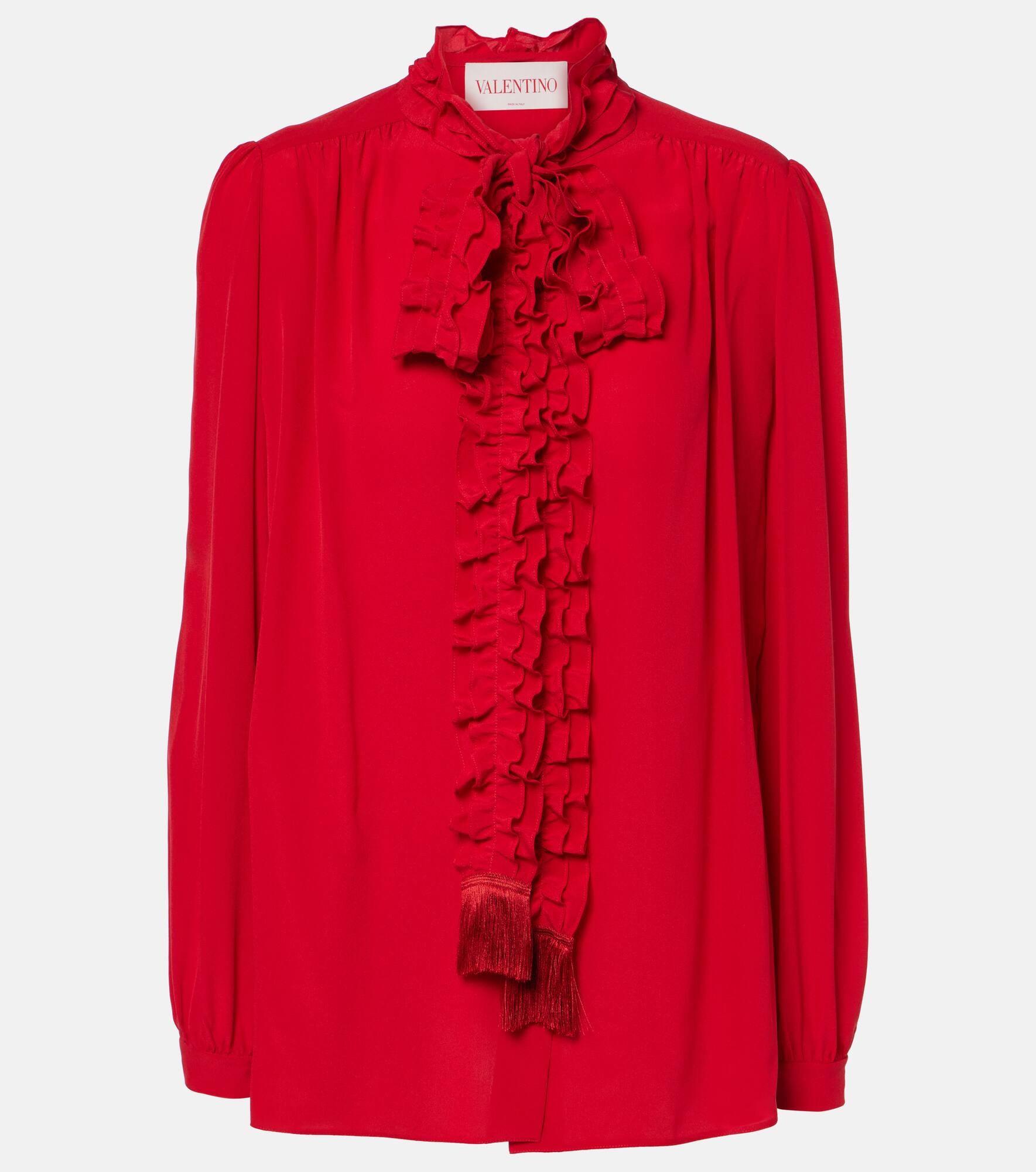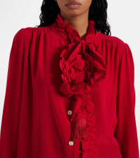 Product Details - Material: 100% silk - Care instructions: dry clean - Made in Italy - Designer color name: Paris - Comes with garment bag - Closure: button-down - Buttoned cuffs - Trim: 98% viscose, 2% cotton - Item number: P01006055 Size & Fit - True to size - Designed for a loose fit - Non-stretchy fabric - Falls below the hip - The model seen in the picture is 178cm-5'10" and wearing a size IT 40