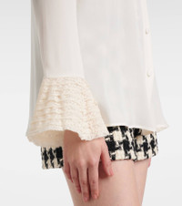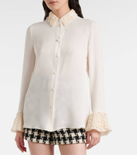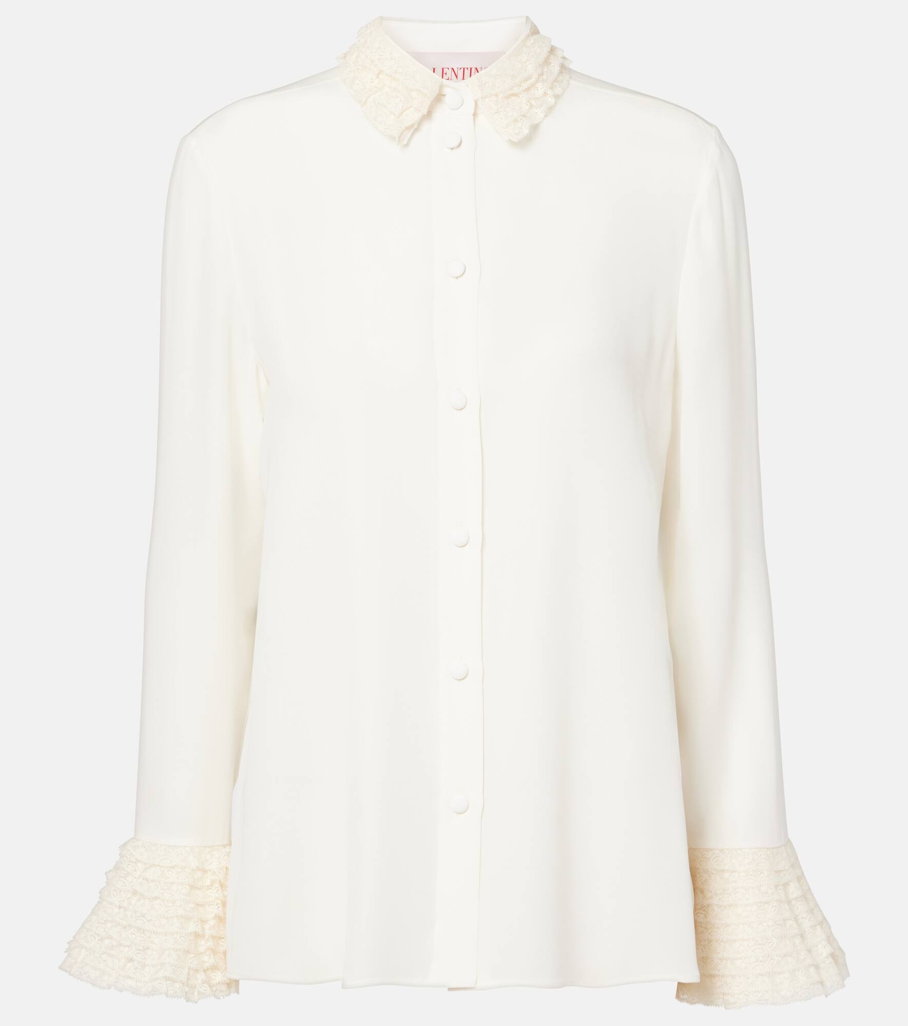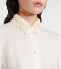 Product Details - Material: 100% silk - Care instructions: dry clean - Made in Italy - Designer color name: Avorio - Comes with garment bag - Material II: 100% polyamide - Closure: button-down - Lace: 88% cotton, 12% polyamide - Item number: P01004788 Size & Fit - True to size - Straight fit - Non-stretchy fabric - Falls below the hip - The model seen in the picture is 178cm-5'10" and wearing a size IT 40