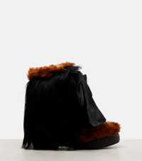 Elevate your footwear collection with the Snowish ankle boots from Valentino Garavani. Featuring long and short-haired shearling exterior, this playful pair is finished with taffeta ribbons at the front. Product Details - Upper: shearling - Lining: fabric - Sole: fabric insole, rubber sole - Toe shape: round toe - Made in Italy - Includes: dust bag, shoe box - Designer color name: Nero/Ruggine/Nero - Item color: black, brown - Trim: fabric - Item number: P01102139 Size & Fit - True to size - European sizes - 3cm-1" platform (size EU 38) - 5cm-2" wedge heel (size EU 38)