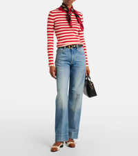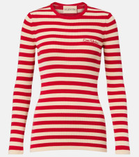 Valentino brings a fresh breath of style to your knitwear collection with minimalist, eye-catching pieces like this sweater. The ribbed design features an all-over striped pattern and a Chez Valentino embroidery. Product Details - Material: 100% cotton - Care instructions: dry clean - Made in Italy - Designer color name: Betulla/Paris - Item color: ivory, red - Item number: P01059824 Size & Fit - True to size - Fitted - Stretchy fabric - Falls to the hip - The model seen in the picture is 178cm-5'10" and wearing a size XS