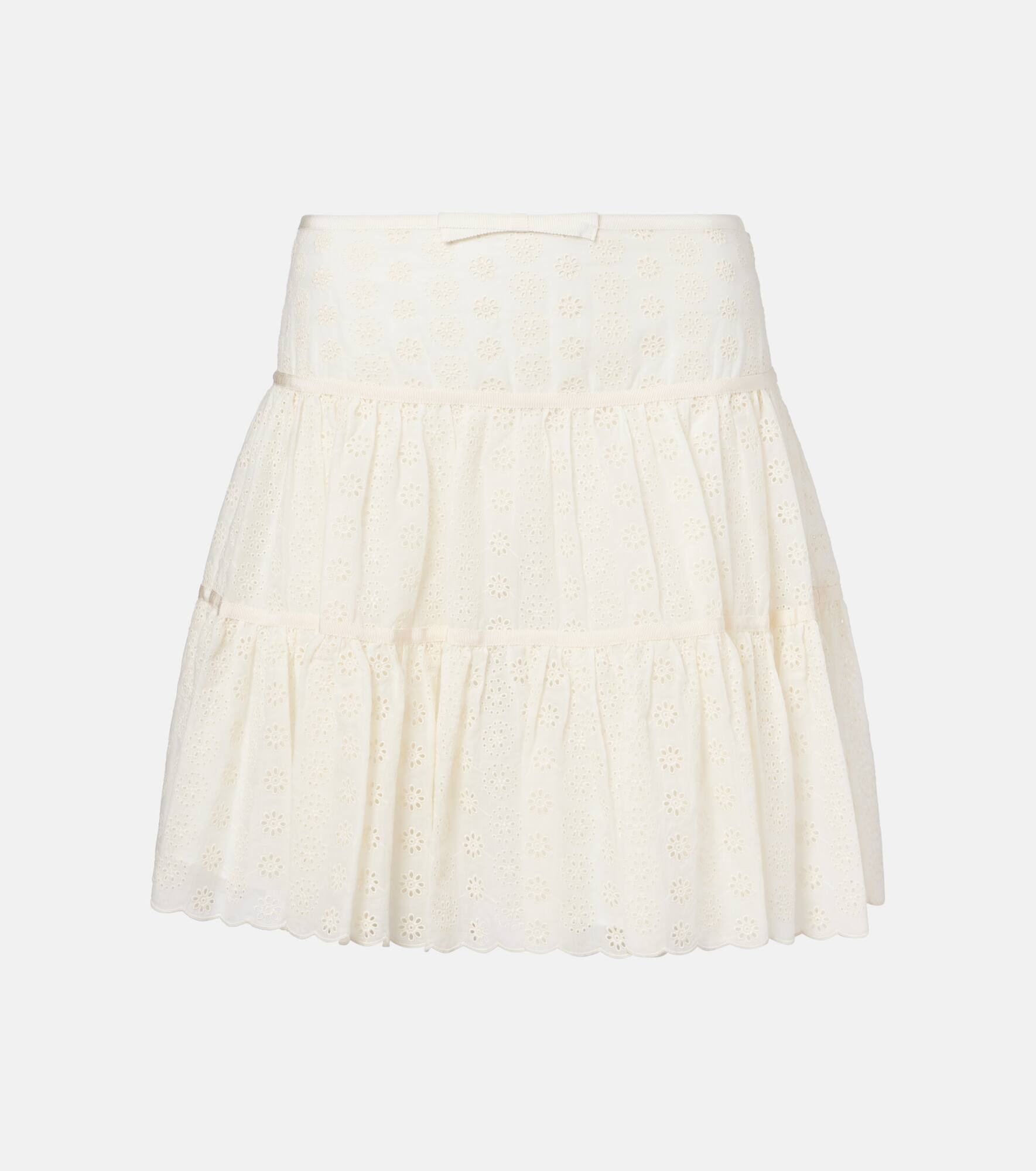 Tiered cotton lace miniskirt