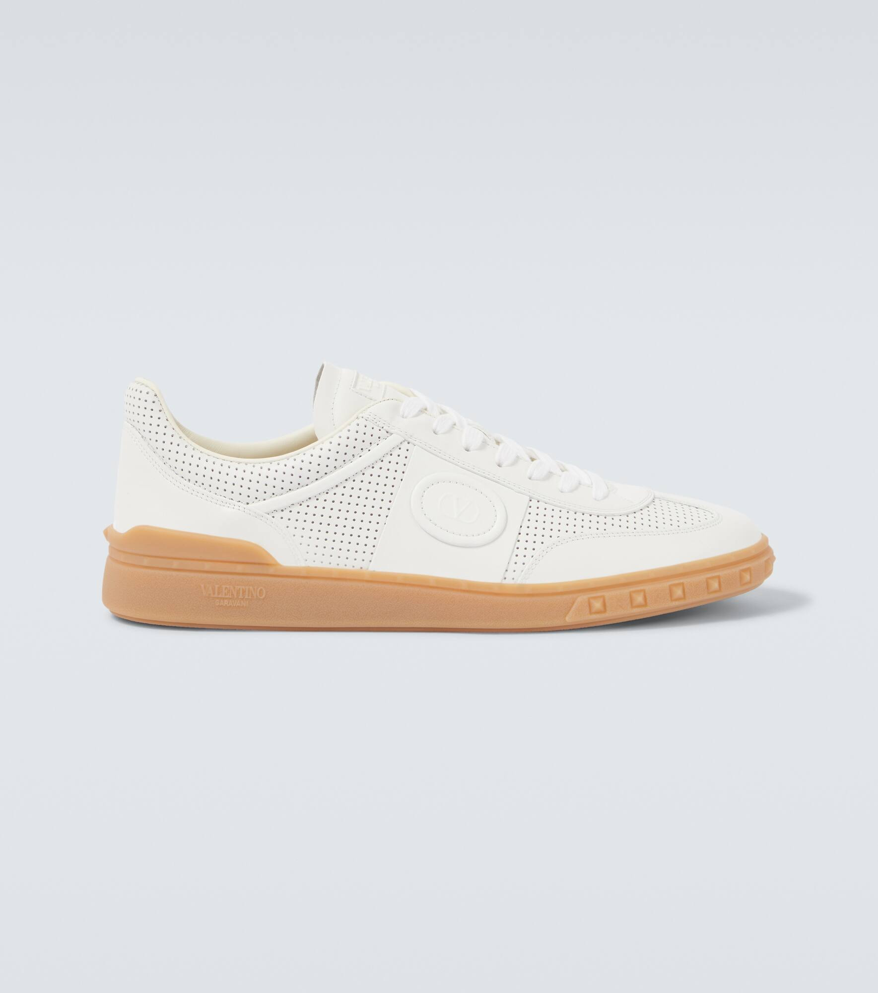 The most established Italian Maison de Couture, Valentino has become a symbol of crafting excellence, creativity, and uniqueness. Made from perforated white leather with tone-on-tone leather trims, the Upvillage sneakers feature the brand's iconic VLogo debossed upon the sides. Product Details - Upper: leather (nappa) - Lining: leather, fabric - Sole: leather insole, rubber sole - Toe shape: round toe - Made in Italy - Includes: dust bags, extra laces, shoe box - Designer color name: Bianco/Bianco/Bianco/Ambra - Item color: white - Item number: P01041325 Size & Fit - True to size - European sizes