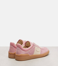 Stud-embossed outer soles define the Upvillage sneakers from Valentino Garavani. Crafted in Italy from suede, the pair features contrast bands accented with VLogo Signature embossed leather patches. Product Details - Upper: leather - Lining: leather - Sole: fabric insole, rubber sole - Toe shape: round toe - Made in Italy - Includes: shoe box, dust bag - Designer color name: Candy Rose/Glace/Glace/Ambra - Item color: pink, ivory - Contains non-textile parts of animal origin - Item number: P01062531 Size & Fit - Fits slightly large to size - we recommend trying a half size smaller - European sizes - 2,5cm-1" platform (size EU 38) - 3cm-1" wedge heel (size EU 38)