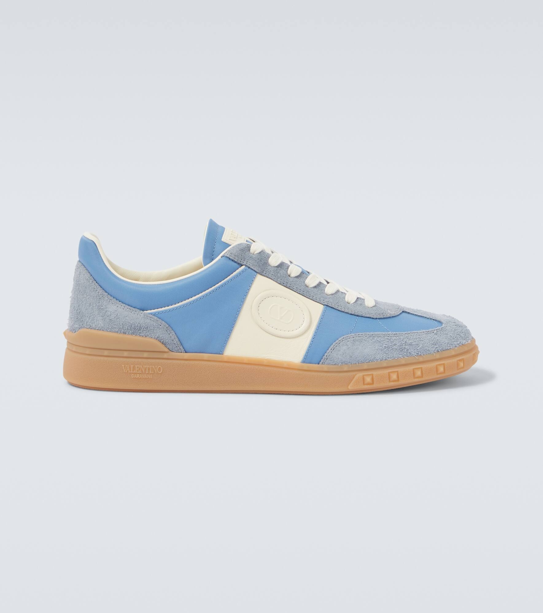 The most established Italian Maison de Couture, Valentino has become a symbol of crafting excellence, creativity, and uniqueness. Made from dusty blue suede with contrasting white leather trims, the Upvillage sneakers feature the brand's iconic VLogo debossed upon the sides. Product Details - Upper: leather, fabric - Lining: leather, fabric - Sole: fabric insole, rubber sole - Toe shape: almond toe - Made in Italy - Includes: dust bag, extra laces, dust bags - Designer color name: Grey - Item color: blue - Item number: P01041324 Size & Fit - True to size - European sizes