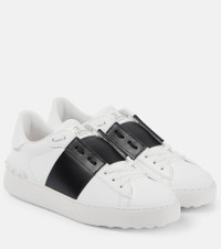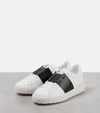 These Open sneakers are the Valentino Garavani footwear design we're pining for. The low-top style is crafted from smooth white leather, and features a single black strip and those signature pyramid Rockstuds, both proving to be sublimely luxe accents. We'll be wearing ours during the day with leather leggings and a blazer. Product Details - Lining: leather - Sole: leather insole, rubber sole - Toe shape: round toe - Upper: calf leather - Closure: lace-up - Designer color name: Black - Made in Italy - Item number: P00298371 Size & Fit - True to size - European sizes - 2,5cm-1" platform (size EU 38) - 3cm-1" wedge heel (size EU 38)