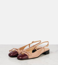 Valentino Garavani always impresses with its covetable Italian flair and dedication to craftsmanship. The Valet Du Roi flats are a classic slingback style made in Italy purely from leather. Product Details - Upper: leather - Lining: leather - Sole: leather insole and sole - Toe shape: round toe - Made in Italy - Includes: shoe box, dust bags - Designer color name: Rose Cannelle/ Dark Garnet - Item color: beige, burgundy - Closure: buckle-fastening ankle strap - Hardware color: gold - Item number: P01041369 Size & Fit - Fits slightly large to size - we recommend trying a half size smaller - Slightly narrow at the toe - European sizes - 2,5cm-1" heel (size EU 38)