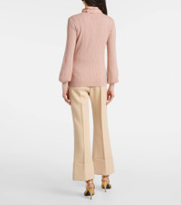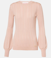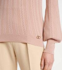 Founded in Rome in 1960, Maison Valentino encapsulates its storied heritage into unique, quintessentially beautiful pieces, like this sweater. Crafted from fine virgin wool, it features delicately ballooned sleeves and is completed by the signature VLogo stud on the hem. Product Details - Material: 100% virgin wool - Care instructions: hand wash - Made in Italy - Designer color name: Rose Mist - Item number: P01006547 Size & Fit - True to size - Fitted - Stretchy fabric - Falls to the hip - The model seen in the picture is 178cm-5'10" and wearing a size XS