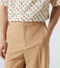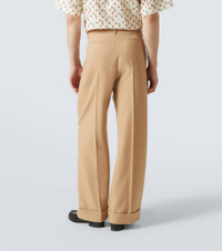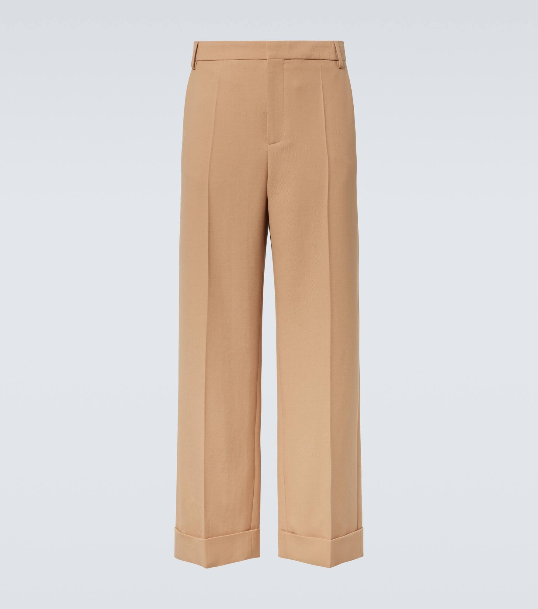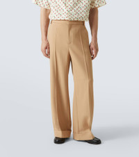 Perfect for the office and elegant dinners alike, these Valentino pants are cut from a lightweight virgin wool fabric. The high-rise pair comes in versatile beige and features crisp front creases and folded cuffs. Product Details - Material: 100% virgin wool - Care instructions: dry clean - Made in Italy - Designer color name: New Camel - Item color: beige - Pocket lining: 100% cotton - Lining: 100% cupro - Contains non-textile parts of animal origin - Closure: zipper, snap-button fastenings - Pockets: side slit pockets, back pockets - Item number: P01043632 Size & Fit - True to size - Non-stretchy fabric - Wide-leg - The model in the picture is 185cm-6'1" and wearing a size IT 50