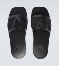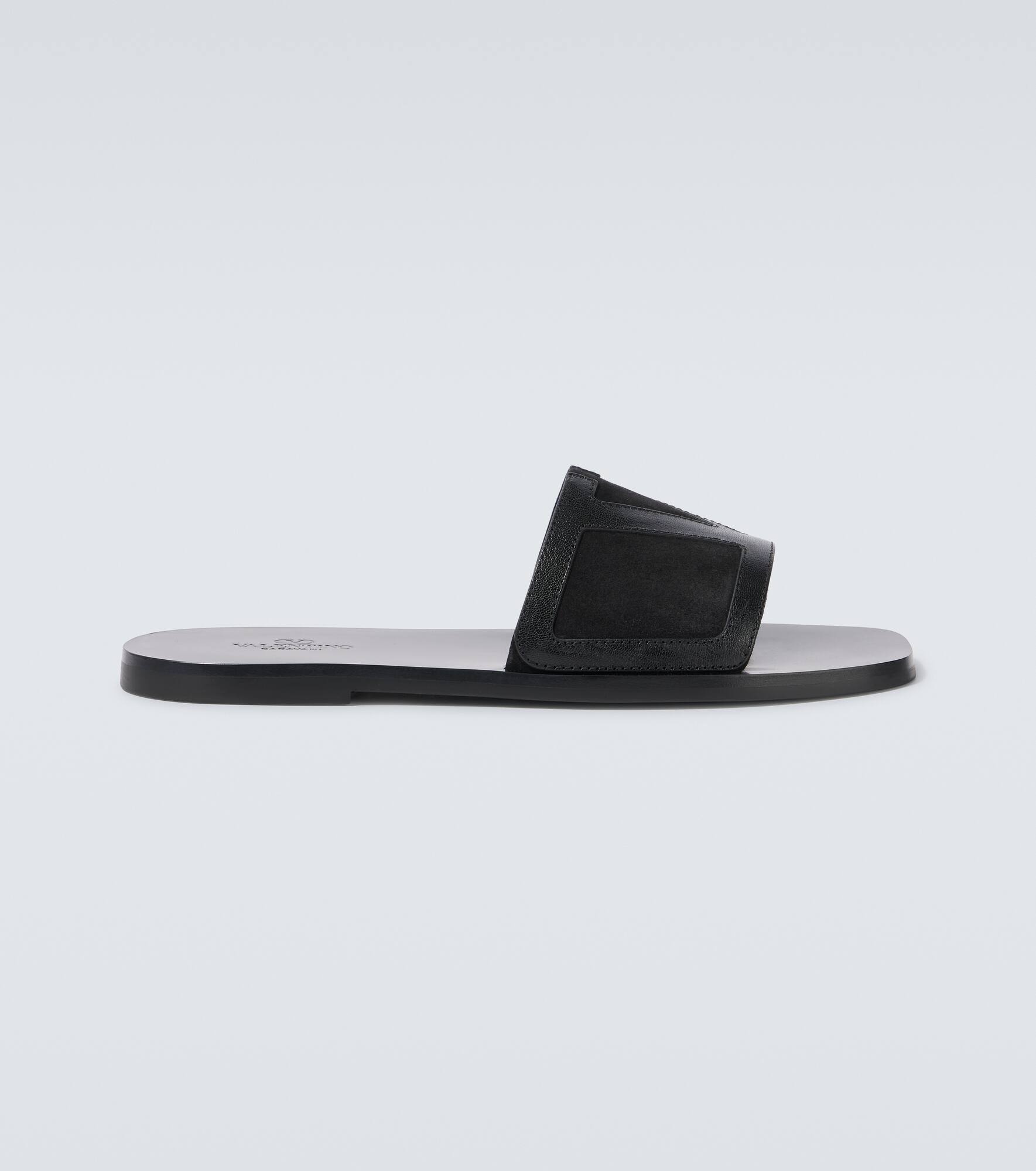 Complete any ensemble on a note of casual refinement with Valentino Garavani's Viva Superstar slides. This black iteration is made from suede with leather trims for a versatile warm-weather option. Product Details - Upper: leather - Lining: leather - Sole: leather insole, rubber sole - Toe shape: square open toe - Made in Italy - Includes: shoe box, dust bags - Designer color name: Nero - Item color: black - Item number: P01041320 Size & Fit - True to size - Half sizes please take the next size up - European sizes