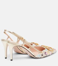 Valentino Garavani has become a symbol of crafting excellence, creativity, and uniqueness. The VLogo slingback pumps are crafted from sequined leather and are set atop 80mm heels. Product Details - Upper: leather, fabric - Lining: leather - Sole: leather insole, leather and rubber sole - Toe shape: pointed toe - Made in Italy - Includes: shoe box, dust bag - Designer color name: Multicolor/Platino - Item color: multicolor - Slingback strap - Hardware color: gold - Closure: buckle fastening - Item number: P01102147 Size & Fit - True to size - For narrow feet, we recommend trying a half size smaller - European sizes - 8cm-3" heel (size EU 38)