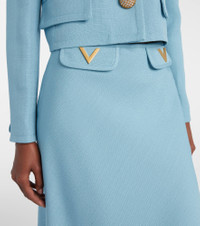 At once iconic and understated, Valentino Garavani's VLogo Signature carries the Maison's legacy of elegance. It features here in a symmetrical design on this canvas midi skirt. Product Details - Material: 100% viscose - Care instructions: dry clean - Made in Italy - Designer color name: Bluish Grey - Item color: blue - Lining: 74% acetate, 26% silk - Closure: zipper, hook fastening, zipped side - Item number: P01059878 Size & Fit - True to size - Non-stretchy fabric - The model seen in the picture is 178cm-5'10" and wearing a size IT 40