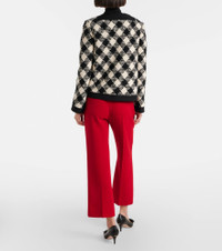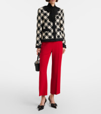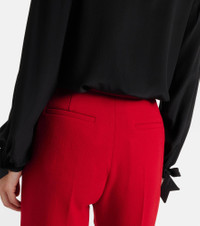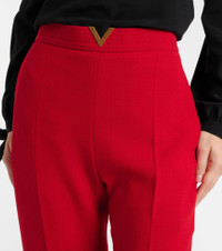 These Valentino pants are expertly crafted in Italy from virgin wool crepe for a cozy, warm texture. The pair is tailored to a cropped, flared silhouette and adorned with the signature VLogo at the waist. Product Details - Material: 100% virgin wool - Care instructions: dry clean - Made in Italy - Designer color name: Carminio - Item color: red - Pocket lining: 100% cotton - Hardware color: gold - Pockets: slant pockets, back pockets - Closure: concealed zipped side - Item number: P01108226 Size & Fit - True to size - Non-stretchy fabric - Straight leg - High-waisted - The model seen in the picture is 178cm-5'10" and wearing a size IT 40
