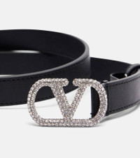 VLogo crystal-embellished leather belt