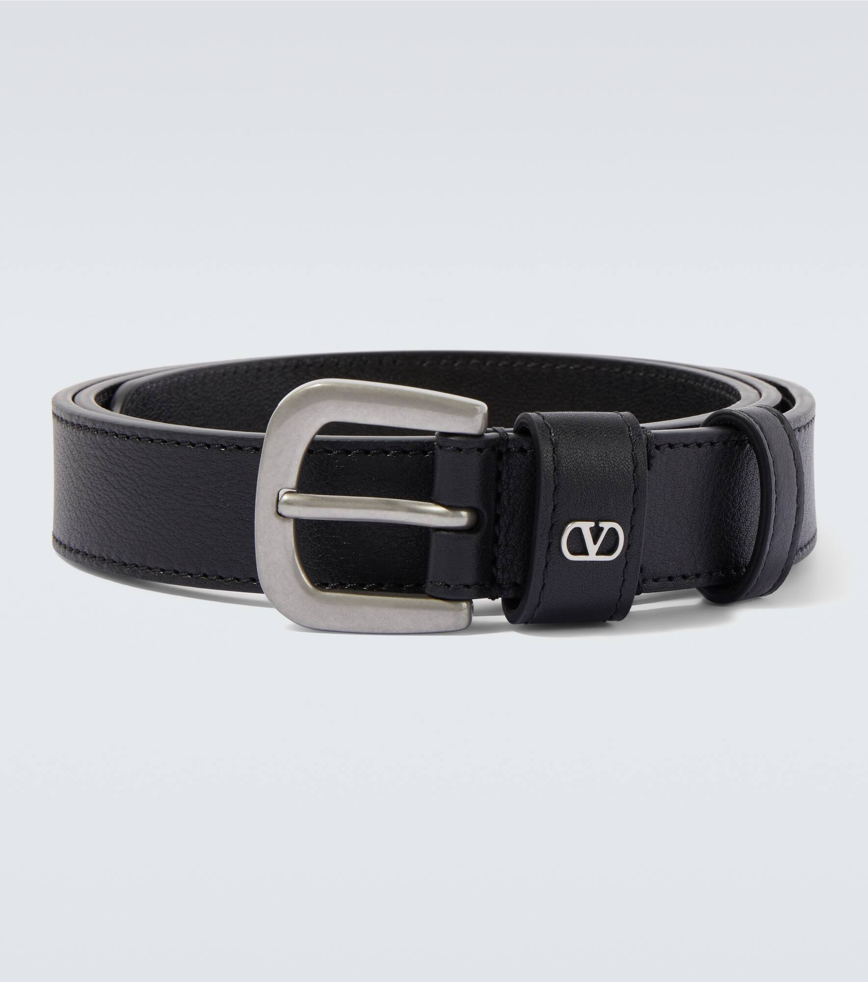 At once iconic and understated, Valentino Garavani's VLogo carries the Maison's legacy of elegance. Here in silver, it adorns the buckle of this classic belt, crafted from smooth leather. Product Details - Material: leather - Lining: leather - Made in Italy - Designer color name: Nero - Item color: black - Includes: box, dust bag - Item number: P01041328 Size & Fit - Width 2,5cm-1" - Buckle width 3,5cm-1.5"