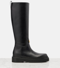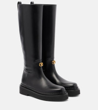 Trust Valentino Garavani to deliver elegant designs that seamlessly transition from day to night. These knee-high boots are made of smooth leather and feature a classic silhouette and gold-toned VLogo hardware. Product Details - Upper: leather - Lining: leather - Sole: leather insole, rubber sole - Toe shape: round toe - Made in Italy - Includes: shoe box - Designer color name: Nero - Item color: black - Closure: zipped side - Hardware color: gold - Item number: P01062124 Size & Fit - True to size - European sizes - 3cm-1" platform (size EU 38) - 4cm-1.5" wedge heel (size EU 38) - 41cm-16" shaft height (size EU 38) - 38cm-15" shaft width (size EU 38) - shaft width measured on largest part of boot