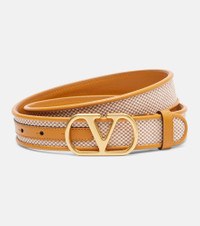 At once iconic and understated, Valentino Garavani's VLogo carries the Maison's legacy of elegance. Here in the buckle version, it elevates this slim belt crafted from woven fabric and tan-hued leather. Product Details - Material: 100% fabric - Care instructions: spot clean - Made in Italy - Designer color name: Naturale/Tobacco/Golden Cui - Item color: beige - Trim: 100% leather - Contains non-textile parts of animal origin - Item number: P01056459 Size & Fit - Width 3cm-1" - Buckle width 4cm-1.5"