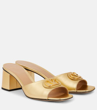 These Valentino Garavani mules are crafted from metallic leather in a glowing golden hue and finished with big VLogo hardware for instant recognition. Product Details - Upper: leather - Lining: leather - Sole: leather insole and sole - Toe shape: square open toe - Made in Italy - Includes: shoe box - Designer color name: Antique Brass Light - Item color: gold - Hardware color: gold - Item number: P01062316 Size & Fit - Fits slightly large to size - we recommend trying a half size smaller - Slightly narrow - European sizes - 6cm-2.5" heel (size EU 38)