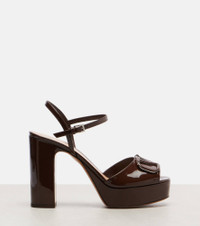 At once iconic and understated, Valentino Garavani's VLogo carries the Maison's legacy of elegance. Made in Italy from brown patent leather, these platform sandals feature a tonal rendition of the brand's signature. Product Details - Upper: calf leather - Lining: leather - Sole: leather insole and sole - Toe shape: square open toe - Made in Italy - Includes: shoe box, dust bag - Designer color name: Bark Brown - Item color: brown - Closure: buckle fastening - Item number: P01102143 Size & Fit - True to size - European sizes - 11,5cm-4.5" heel (size EU 38) - 3,5cm-1.5" platform (size EU 38)